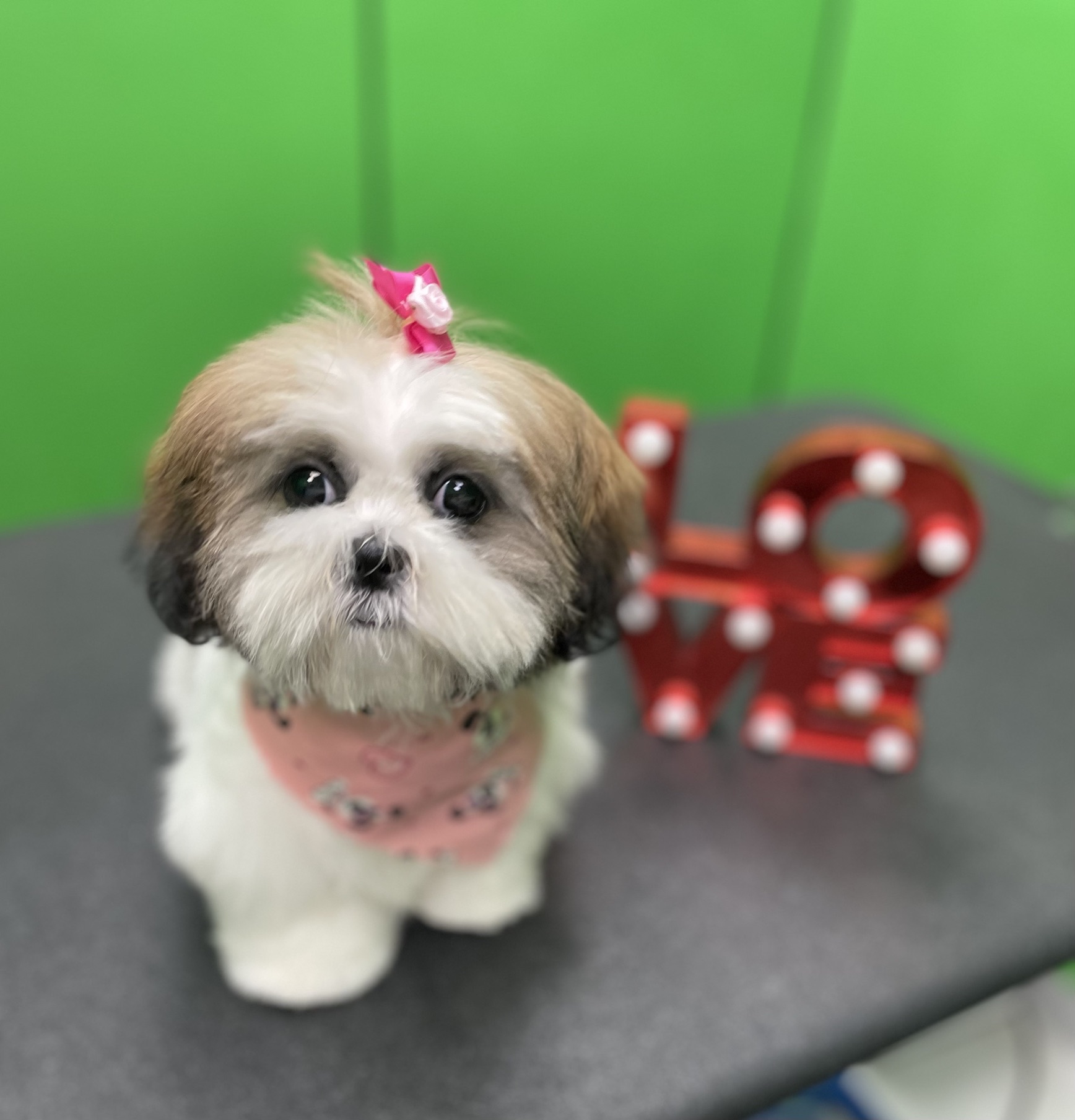 Shih Tzu puppies should start professional grooming as early as possible. The puppy coat transitions to the adult coat between 10 and 12 months, and early, positive salon experiences set the tone for the next decade-plus of appointments. Puppies under 5 months can start with our Puppy Package to build positive grooming habits before the adult coat comes in.
